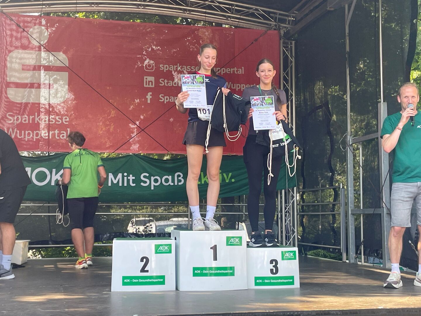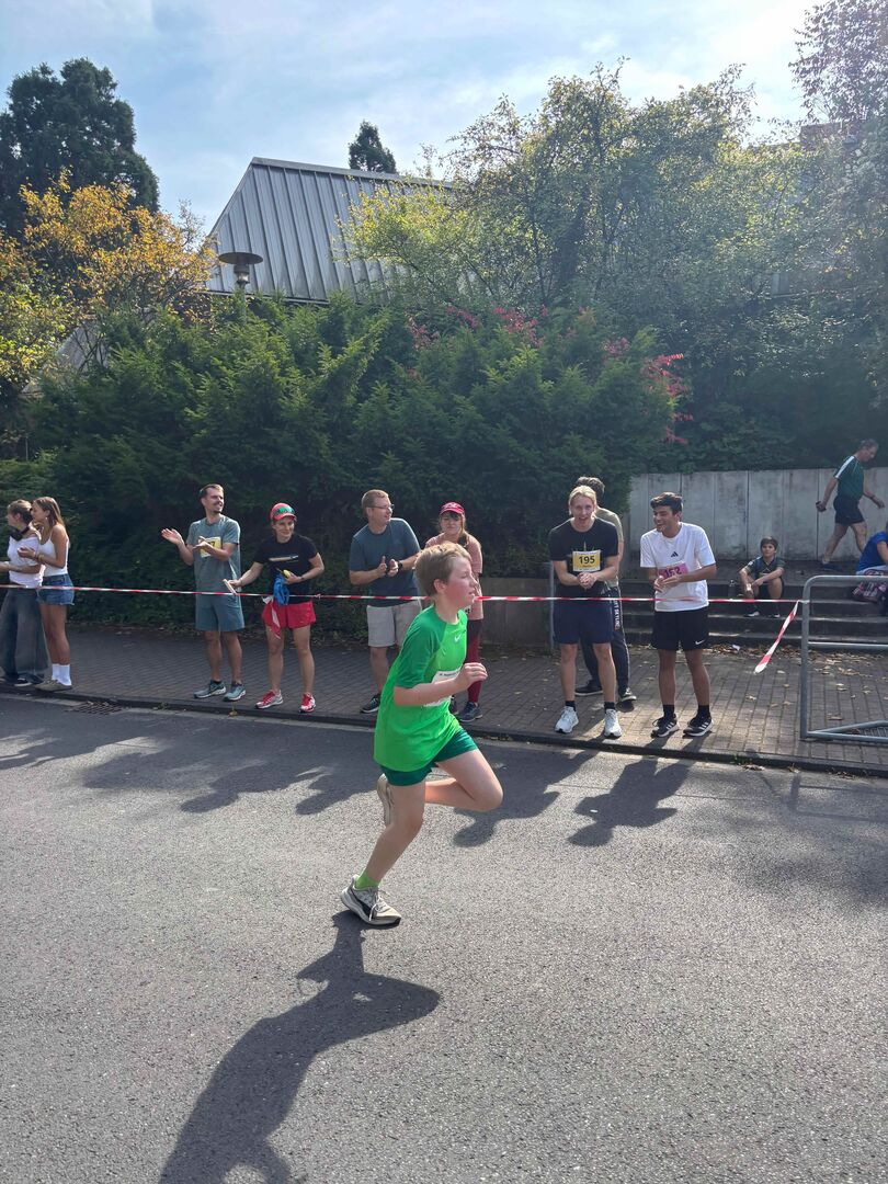 Bei spätsommerlichen Temperaturen gingen rund 100 Läuferinnen und Läufer des Gymnasiums Sedanstraße beim 58. Wuppertaler Volkslauf am Samstag an den Start. Alle Sedanesen gingen hochmotiviert auf die Laufstrecke und kamen nach 2km oder 5km ins Ziel. Der 1km-lange Rundparcours um das Gelände des Bayer Sportparks machte ein intensives Anfeuern der Laufenden möglich. Unter lauten Anfeuerungsrufen der MitschülerInnen, Eltern und Lehrer gab spätestens auf der Zielgeraden jede/r nochmal Alles. Auf der 2km-Strecke gelang Elaine Theis (5a) mit einer Zeit von 10:04 Minuten in der Altersklasse U12w ein starker dritter Platz. Den zweiten Platz in der AK U16m erreichte Theo Kronisch (10b) mit einer tollen Zeit von 08:10 Minuten. Die insgesamt schnellste Zeit der Sedanstraße über die 5km-Distanz lief Daniel Tarasov (Q1), der die Lichtschranke der Zielzeitmessung bereits nach beeindruckenden 21:18 Minuten durchbrach und damit den 1. Platz in der U18m belegte. Ebenfalls erste in ihrer Altersklasse U18w und drittschnellste Frau insgesamt wurde Sophie Leismann (EF) mit einer Zeit von 25:59 Minuten.