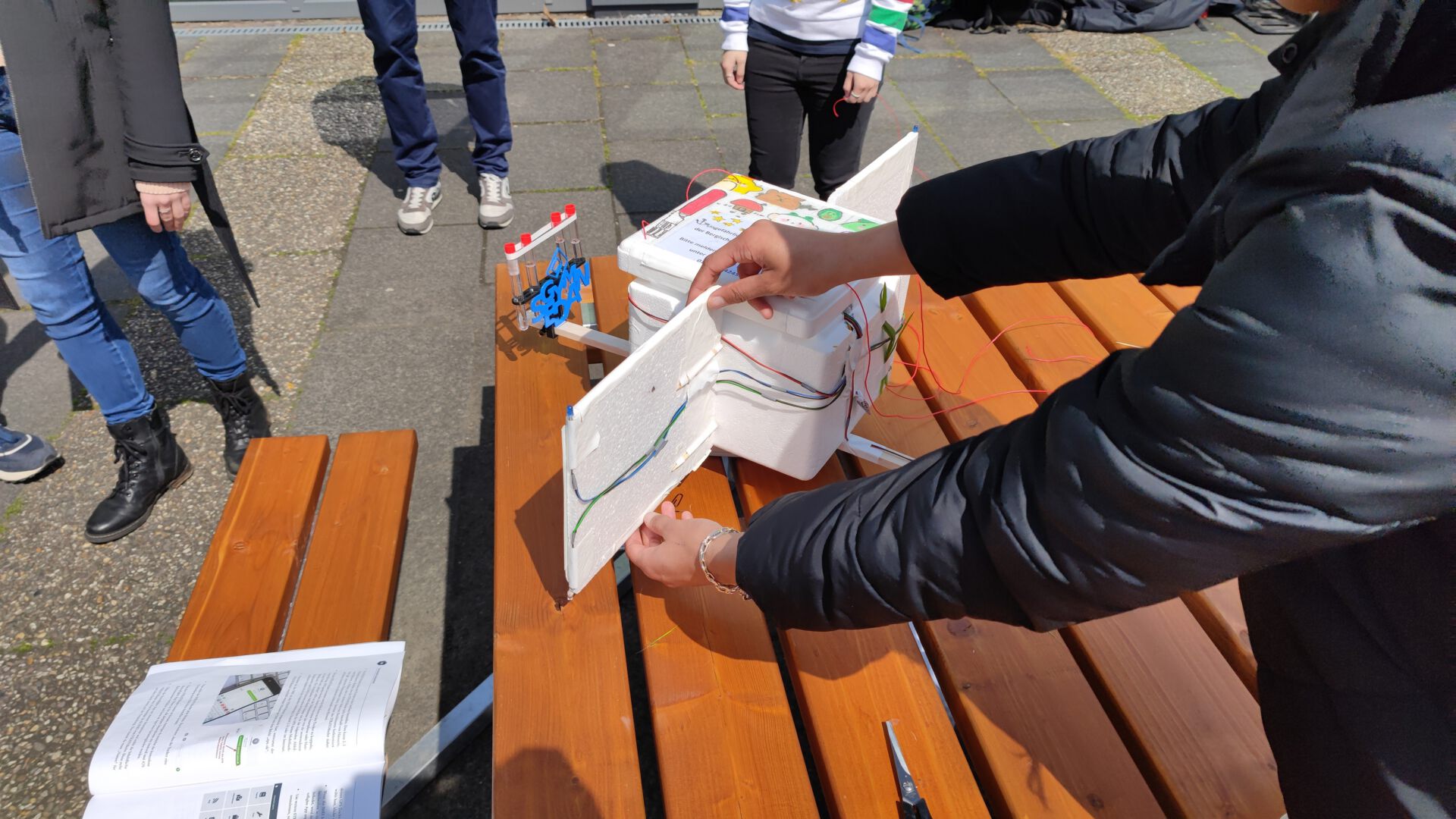Vom Bau der Messegeräte über deren Programmierung bis hin zum Sammeln eigener Klimadaten mit einem Klimamess-Bollerwagen – all das lernten Schüler*innen der Klassenstufen sieben bis elf (Q1) in der Arbeitsgemeinschaft „Dem Stadtklima auf der Spur“. Angeleitet wurden sie dabei von einem Team um Jannis Woywod, Wissenschaftlicher Mitarbeiter im GeoIT Schülerlabor der Bergischen Uni, das in das Institut für Geographie und Sachunterricht integriert ist.
