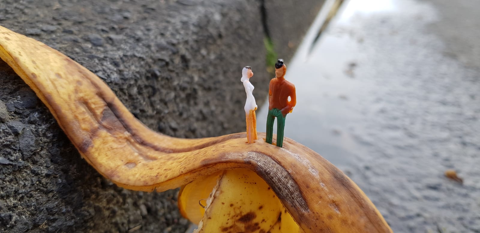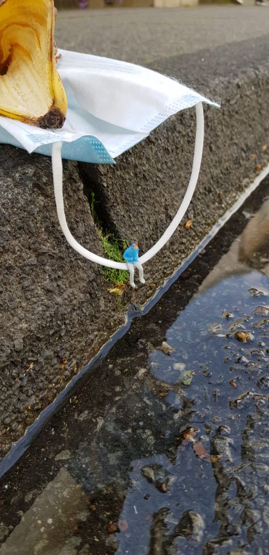 Die Aufgabe entstand in Anlehnung an die Arbeiten des Streetart-Künstlers Slinkachu. Sie leben von der veränderten Größendimension, von Perspektiven der „kleinen Leute“ in einer uns sonst - gerade zu Corona-Zeiten - sehr vertrauten Umgebung.