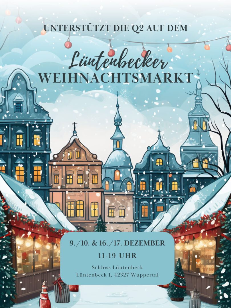 Auch in diesem Jahr ist die Q2 auf dem Lüntenbecker Weihnachtsmarkt am 9./10. und 16./17. Dezember jeweils von 11-19 Uhr vertreten. Dort werden neben selbstgebackenen Nussecken und Weichnachtskeksen auch unser …