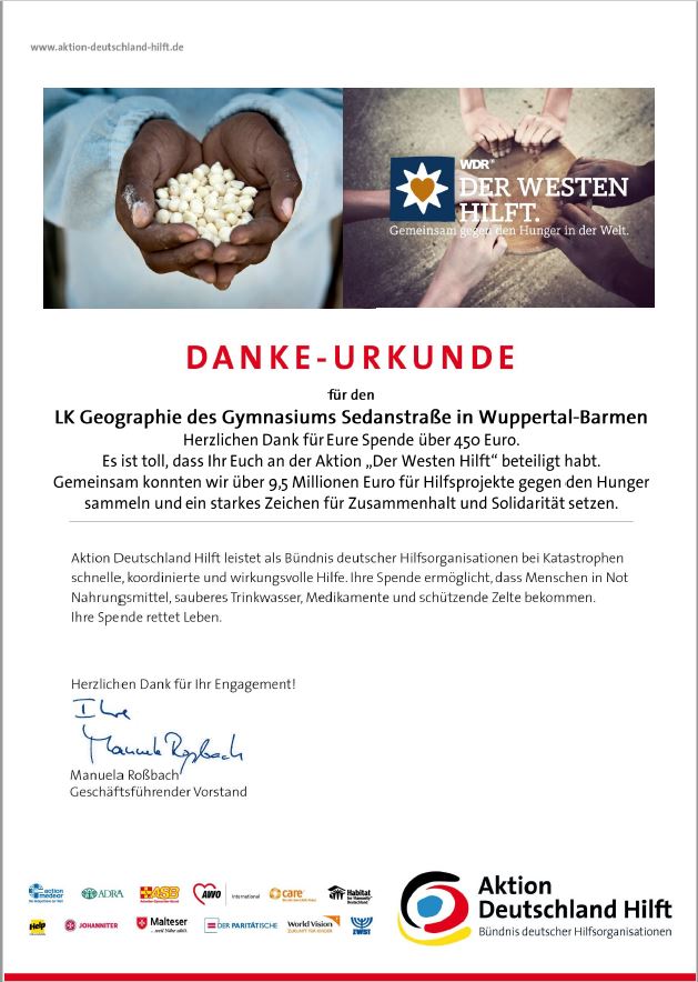 mehr...Der Geographie LK der Jahrgangsstufe Q1 freut sich über ein großartiges vorweihnachtliches Spendenergebnis von insgesamt 450 €. Wir bedanken uns für jede kleine und auch größere Spende, die den Menschen, …