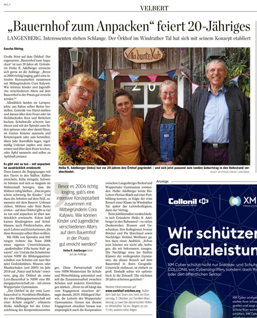 Zu unserer Bildungspartnerschaft mit dem Örkhof im Windrather Tal ist in der WAZ ein Zeitungsartikel erschienen.