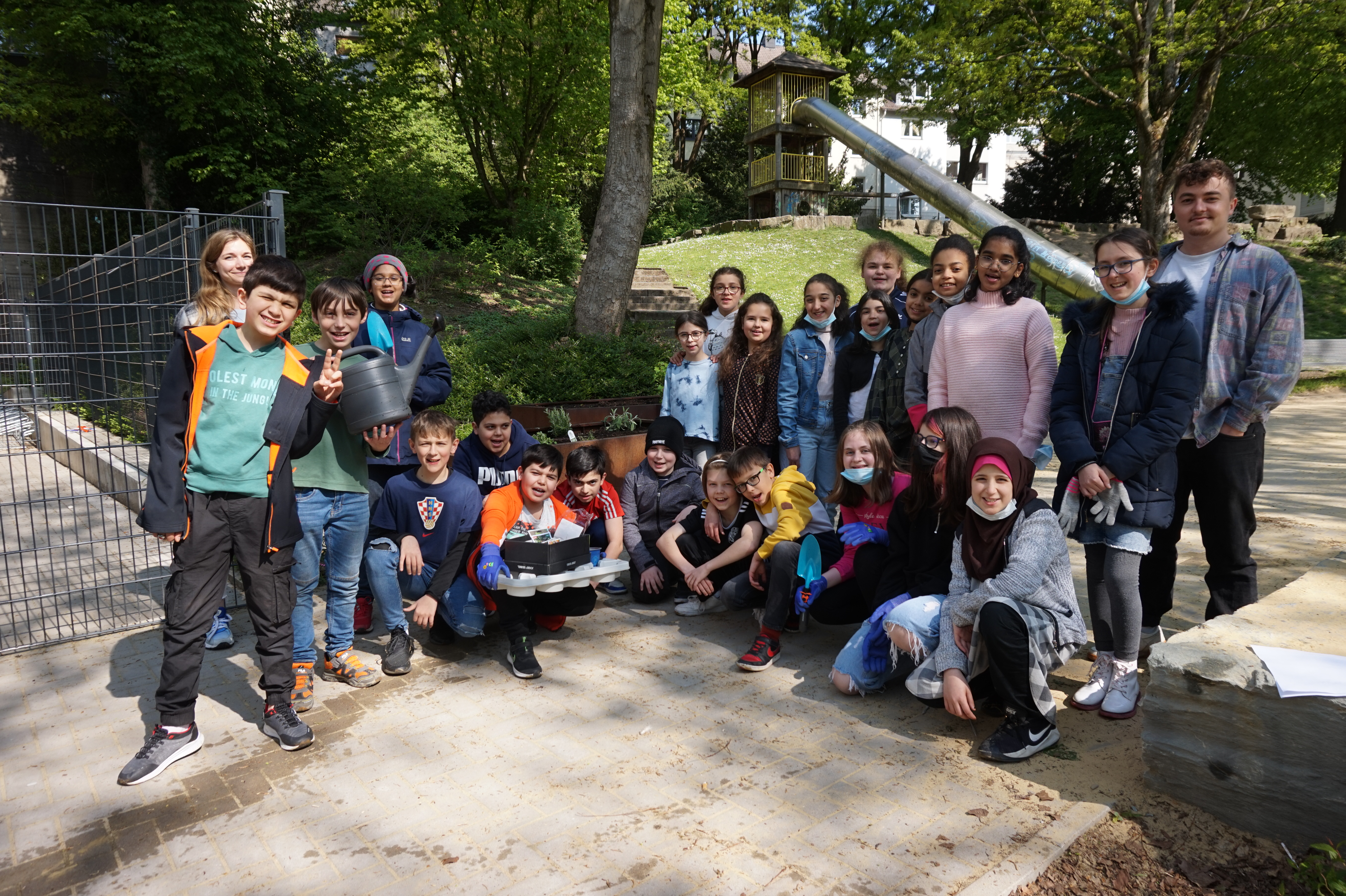 mehr...Die Beete auf dem Spielplatz hinter dem Schulhof sind letzte Woche mit Erdbeeren, Salbei, Oregano, Johannisbeeren und einigem mehr bepflanzt worden. Dabei hat die Klasse 5a im Biologieunterricht die Schaufeln …