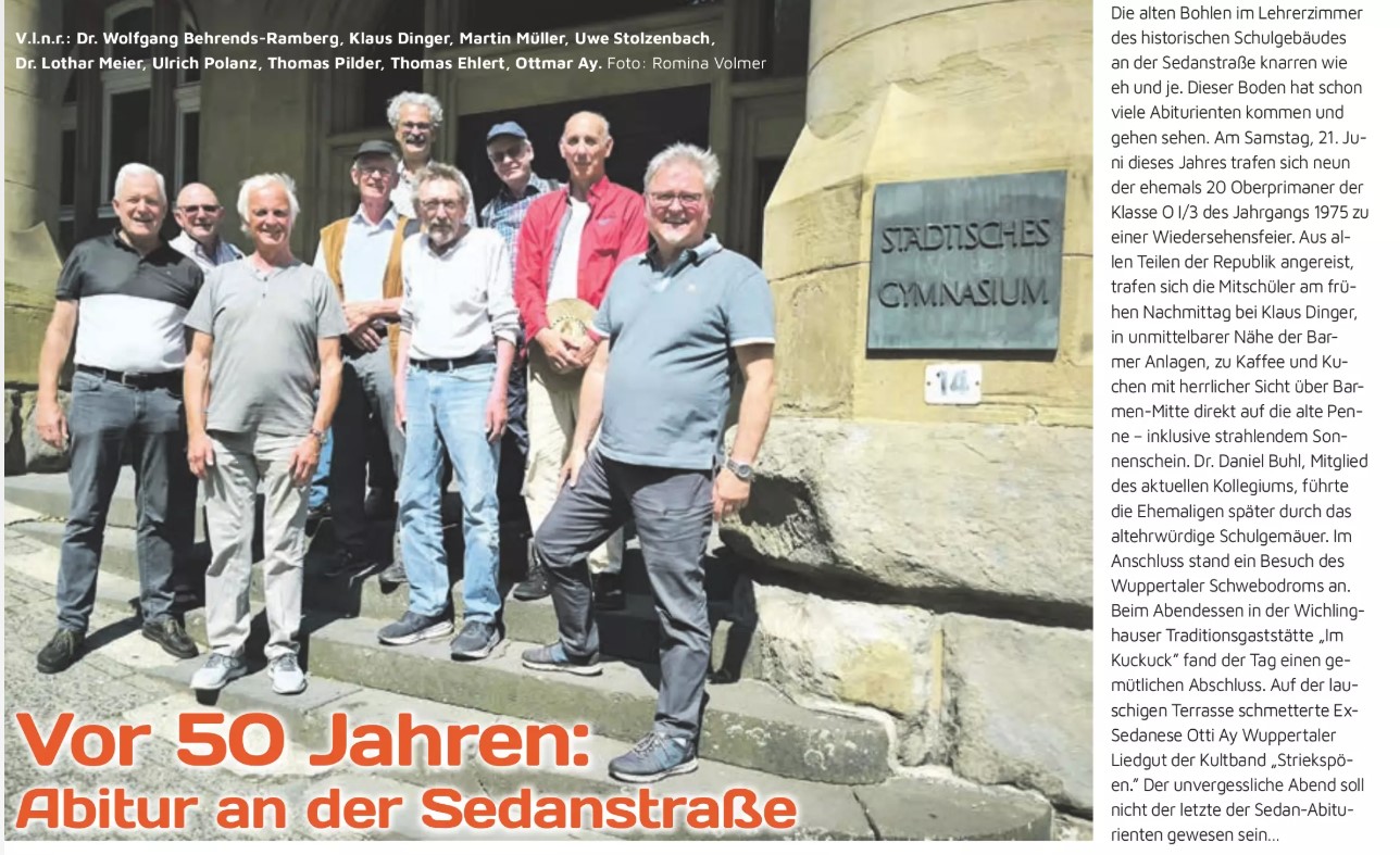 Am 21. Juni 2025 konnten neun ehemalige Sedanesen des Abiturjahrgangs 1975 noch einmal ihre alte Penne besuchen. Den Artikel dazu finden Sie hier auf Seite 12. In unserem Ehemaligenbereich können …