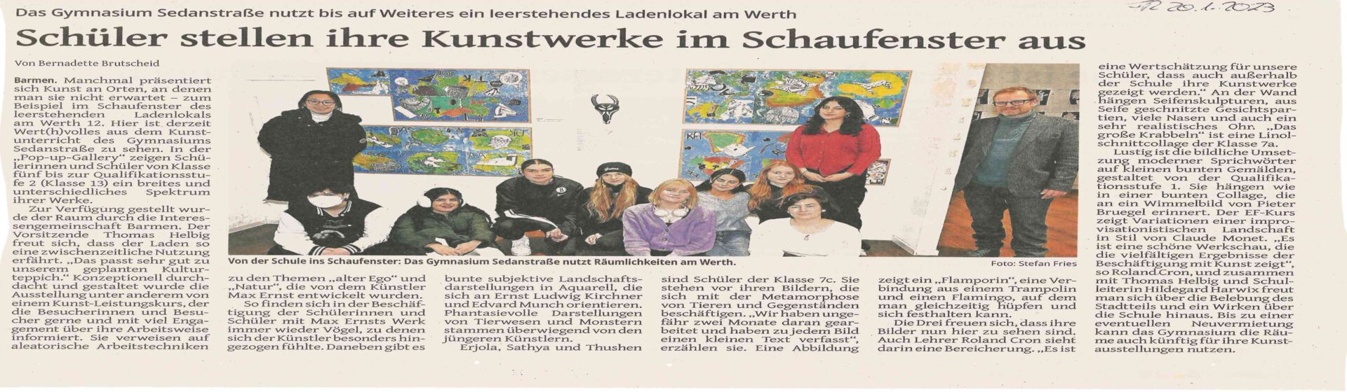Die Schülerinnen und Schüler der Oberstufe des Gymnasiums Sedanstraße laden zur Ausstellung ihrer Malereien in die Stadtsparkasse Barmen ein. Unter dem Motto „Ich fühl mich gelb, ich ärger mich rot!“ …